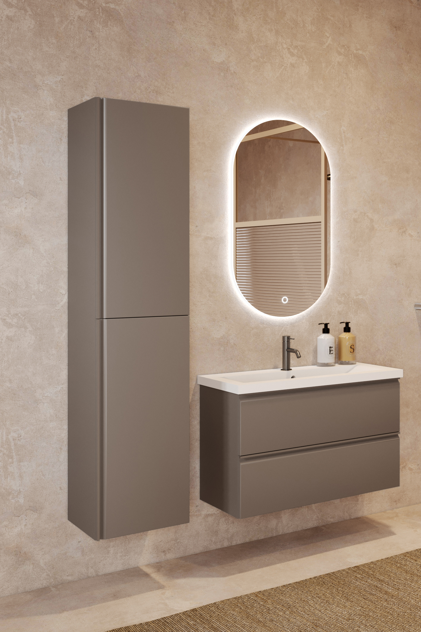 Tall unit color options are matt greige, matt white and matt grey.